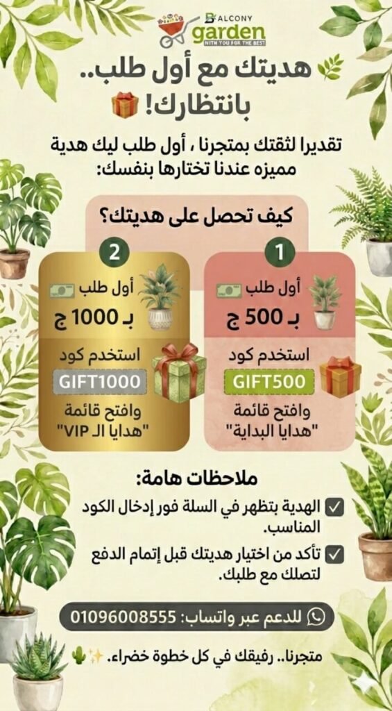بلكونة جاردن هو متجر متكامل يقدم مجموعة واسعة من البذور الطبيعية والنباتات والاسمدة والتربة الزراعية وجميع مستلزمات الحدائق بشكل عام نحن نسعي دائما بان نكون شريكك الموثوق به خلال كل خطوة في رحلتك الزراعية الخاصة بك