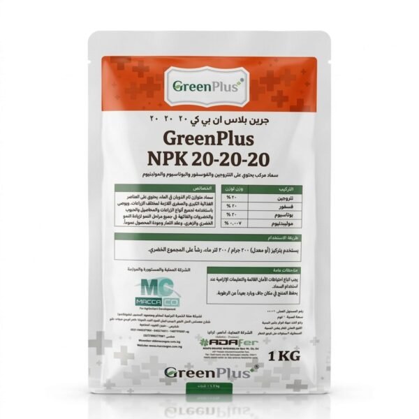 سماد جرين بلس NPK 20-20-20 التركي الأصلي – نقاء أوروبي فائق لنتائج احترافية ونمو استثنائي (1 كجم)